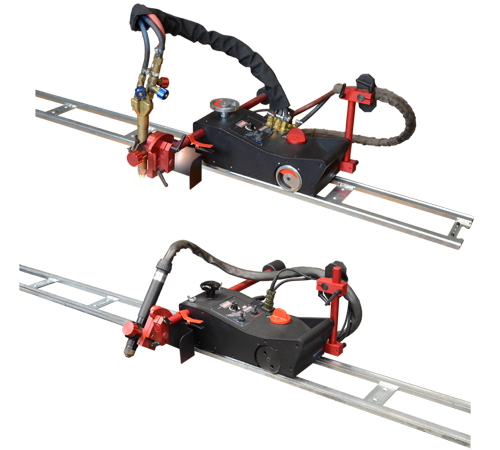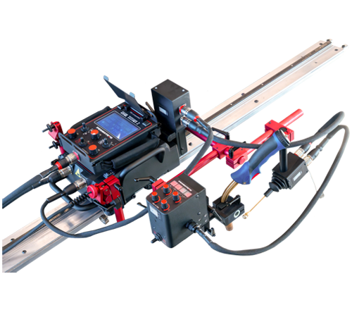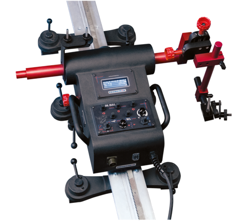 Linear torch oscillator produces straight, triangle, trapezoid and square weld paths. Rail Titan 2 can travel on hi-flex, semi-flexible, rigid or ring tracks that can be clamped to ferrous materials with magnetic units and to non-ferrous materials by means of vacuum track system incl. vacuum pump and vacuum units.