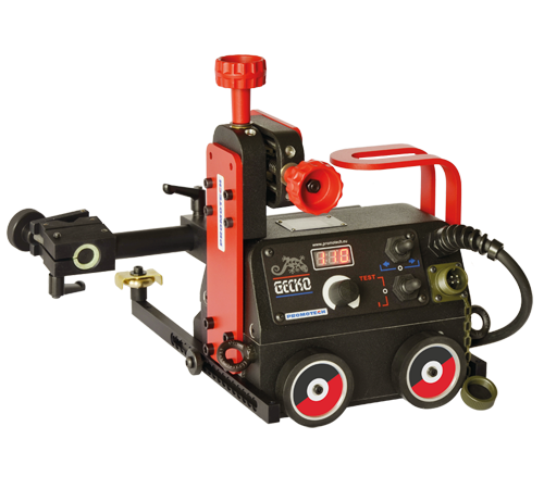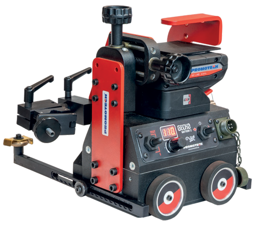 The GECKO BATTERY is a battery-powered trackless welding tractor designed to produce continuous butt and fillet welds using MIG/MAG torches. CAS LiHD battery delivers enough power for handling even the toughest applications with no cables. A 4-wheel drive system with magnetic traction and a feedback loop provide speed stabilization in various welding positions. Constant, continuous, and repeatable travel speed enables weld bead geometry that is exact to the required specifications, thus reducing costly over welding and substantially decreasing filler metal usage.