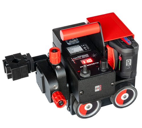 The MINI SPIDER BATTERY is a battery-powered welding tractor designed to produce continuous fillet welds using MIG/MAG torches. The CAS LiHD (High Density Lithium Ion) battery provides sufficient power for handling even the toughest applications without the need for cables.